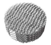孔板波紋填料是在金屬薄板表面沖孔、軋制密紋,沖波紋最后組裝而成的規整填料,具有阻力小、氣液分布均勻、效率高、通量大、放大效應不明顯等特點,應用于負壓、常壓和加壓操作。 孔板波紋填料幾何特性參數: